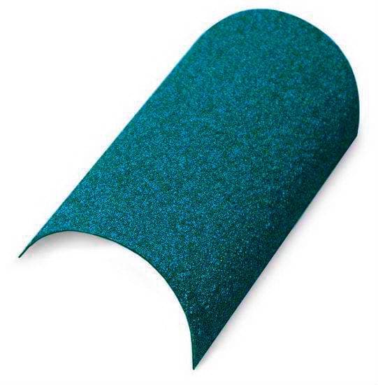 На производстве гибкой черепице гонты в пачки укладывают таким образом, чтобы клейкий слой с одного гонта попадал на несъемную полосу другого.